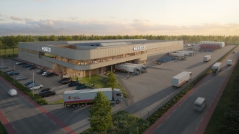 Nieuwbouw van een bedrijfshal met kantoor op een logistiek terrein.