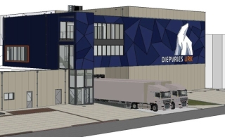 Kantoorsectie van nieuwbouw uitbreiding Diepvries Urk, een combinatiegebouw bestaande uit koel-/vriesindustrie-, kantoor-, bijeenkomstfunctie.