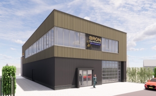 Een deels nieuw en deels bestaand gerenoveerd bedrijfsgebouw.